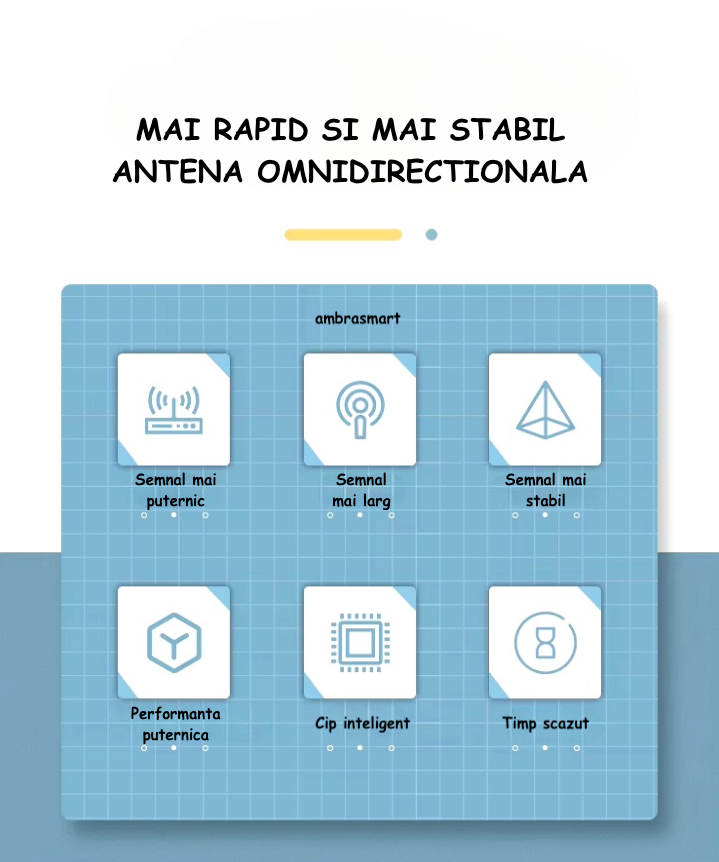 Cu un design compact și o greutate redusă, Routerul Wireless ambrasmart se instalează ușor și se integrează perfect în orice spațiu, oferindu-ți o rețea de încredere și performanță în propria locuință.