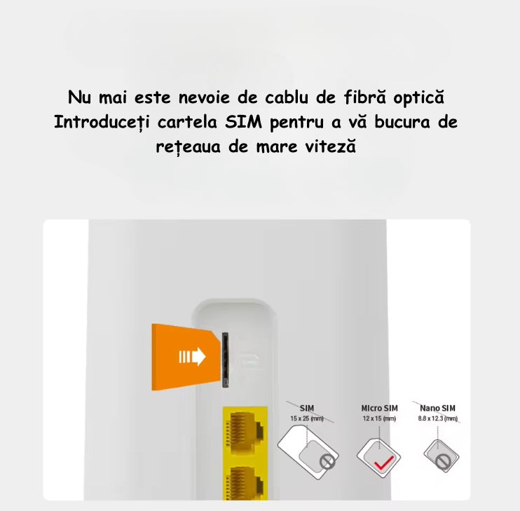 Instalare Simplă: Conectare intuitivă și rapidă prin porturile dedicate și slotul pentru SIM, făcându-l ușor de setat chiar și de către utilizatorii fără experiență tehnică.