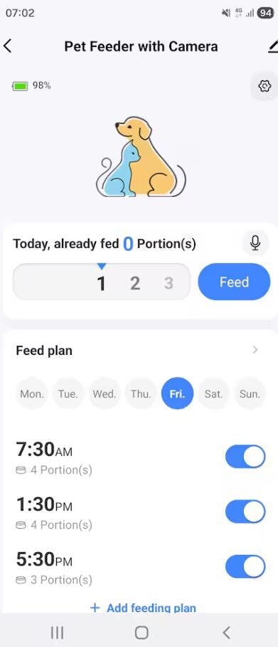 Prin aplicația dedicată și conexiunea Wi-Fi, poți seta orele de hrănire, ajusta cantitățile porționate și controla dispozitivul de la distanță, asigurând o alimentație constantă și personalizată.