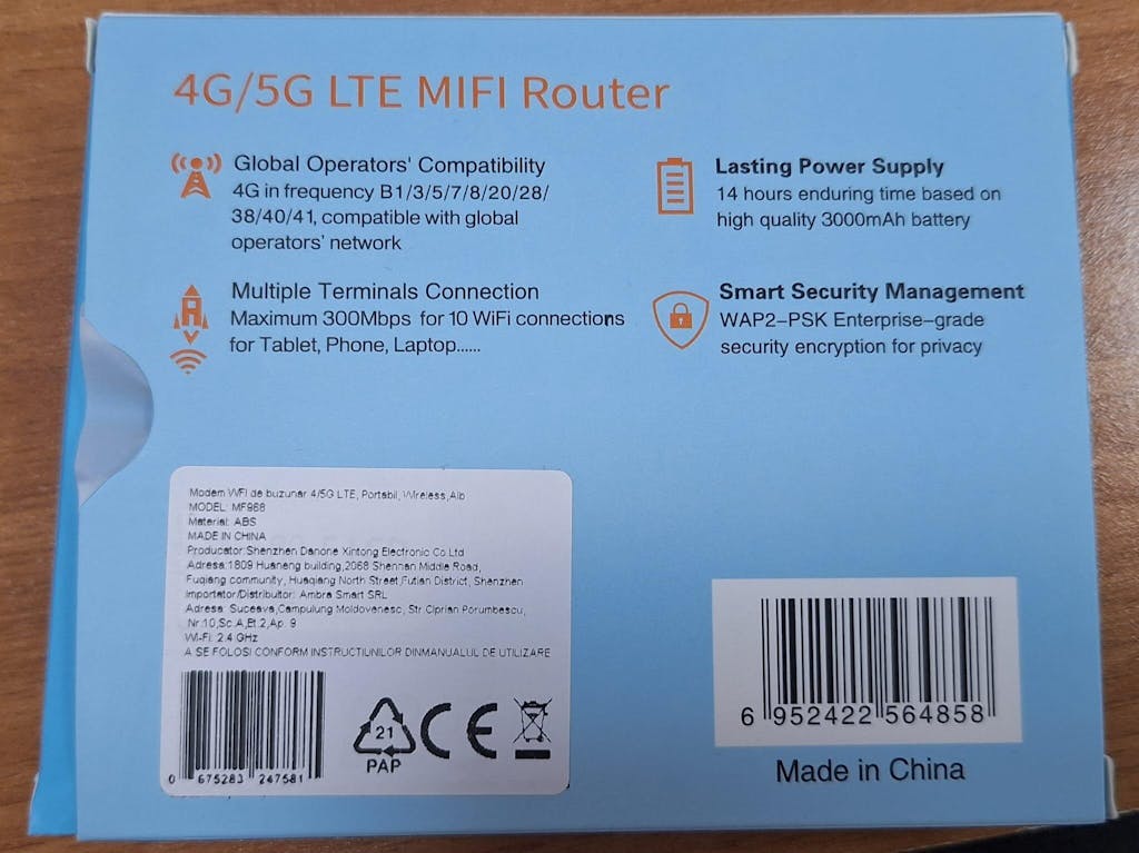 Indiferent dacă ești într-o cafenea, în mijlocul naturii sau într-o cameră de hotel, acest Router WiFi Portabil 4G/5G LTE cu Ecran LCD este partenerul ideal pentru o conectivitate fără întreruperi, oferindu-ți siguranță și confort în utilizare.
